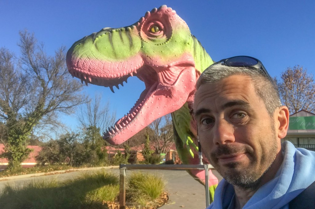 Unlike an antiquated hereditary dynasty, the Canberra Centenary Trail certainly offers diversity and today’s walk was a day to embrace diversity. After soaking up remote stretches of rolling countryside and forest along the northern border, the next leg presents a stark transition heading towards the glimmering high rises of Belconnen Town Centre. Along the way, flirtations with busy traffic intersections, conglomerations of fast food and gasoline, footsteps along hard-packed cycle lanes, an encounter with dinosaurs and – of course – an innovative odour control project in action. Or inaction.