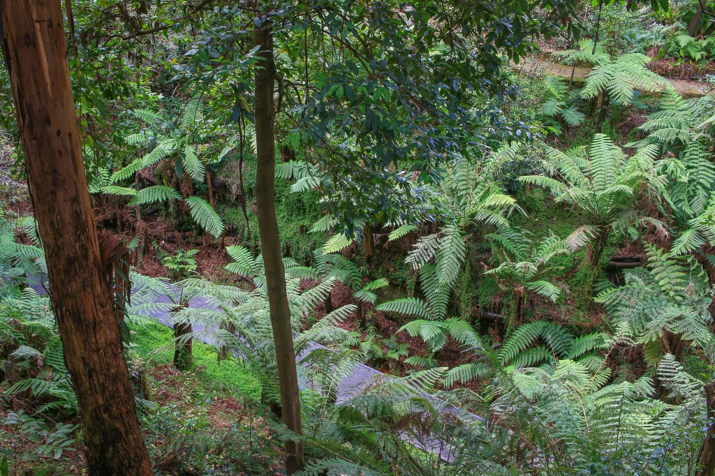 Gold Creek is a funny little place, essentially offering a fun family day out in the one location. There is a dinosaur museum, an aviary, a place for reptiles, and – the piece de resistance – Cockington Green, a model village inspired by the Devonian thatched cottages of West Torbay. Supplementing these attractions are the requisite number of craft shops, cafes, a ‘British Style’ pub, a motel loosely based around Lassiters in Neighbours, a service station and the fun family dining experiences of McDonalds and KFC. Thus it meant that the Centenary Trail now had the salubrious distinction of encompassing two fast food restaurants and a petrol station in the one vista, proving that you really do get a little bit of everything on this walk.
