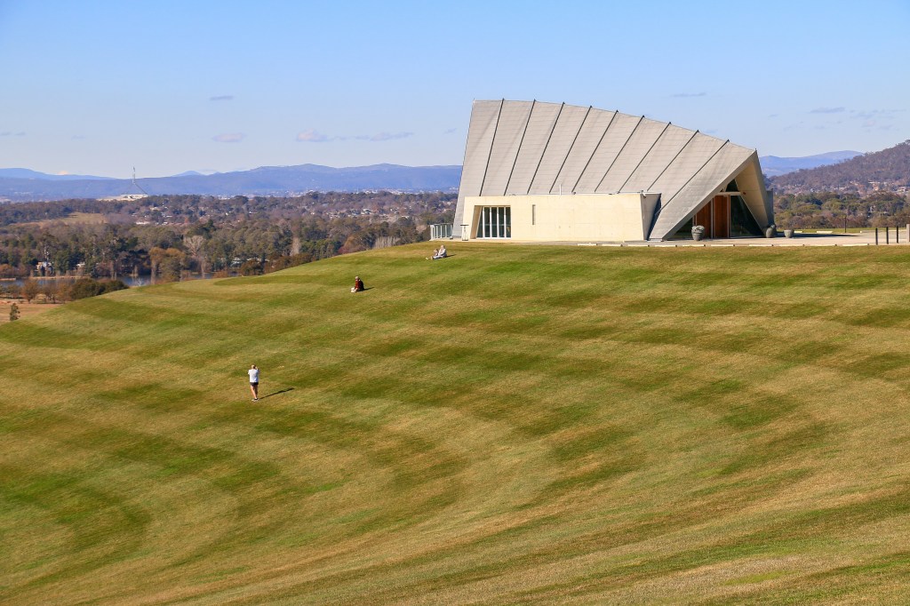 Because of its location in a place commemorating the eighth prime minister of Australia, Canberra Stadium is also still known in some quarters as Bruce Stadium. It emerges now through the gum trees, heralding an entrance to the Australian Institute of Sport. I quite like how the Centenary Trail takes you through here – it’s a bit different and offers insight into the world of an elite athlete. Perfect pitches, pristine ovals, gargantuan gymnasiums, and artistic inspiration celebrating antipodean achievements. In its heyday, the AIS was a world leader and helps explain how Australia came to punch above its weight in international competition. Funding cuts and other countries playing catch up mean it’s lost a bit of its punch in recent years and today – entirely devoid of people – it feels like a ghost town in a ghost town.