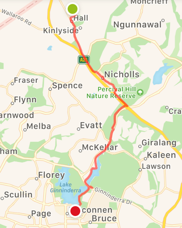 To be fair, the companionship of Alex has been almost always beneficial in managing the logistics of this walk, completing legs between A and B without the need to somehow get back to A. The gorgeous hike between Mulligans Flat and Hall would’ve been nigh on impossible without two cars. Yet a small part of me misses the challenge of coming up with contrived loop walks and cycle combos, adding significantly to the 135km of the Centenary Trail. In the first 50km of the trail, I covered almost 100 by foot and bike. In the second 50, 70, including my 10km ride from Mitchell today.
