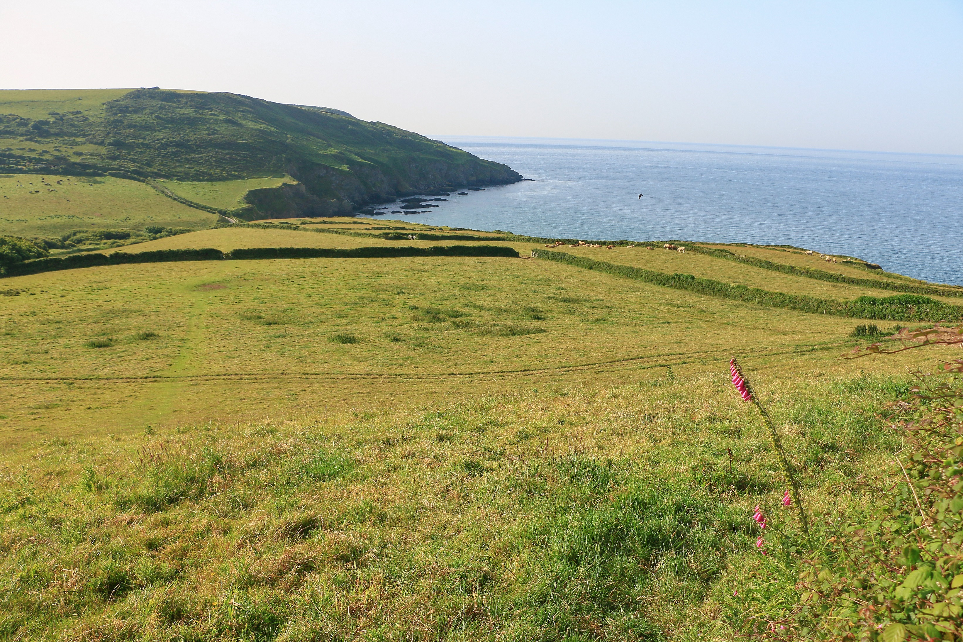 I can’t say I loved the exit from Portloe, but certainly felt much better about the world. The going was again ragged, the trail frequently consumed by nettles and thistles and upward and downward slopes that required the nimbleness of a mountain goat. I passed a walker on the only flat, grassy spot perched above the sea, clearly weighing up whether to take advantage of this rarity and set up camp. Further along, a Welshman informed me of a dolphin pottering around in the water somewhere, as well as something I heard as “Ardours”.